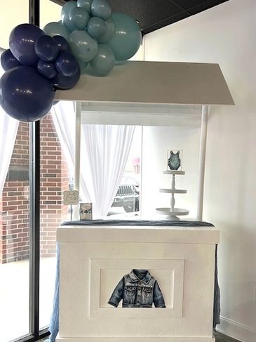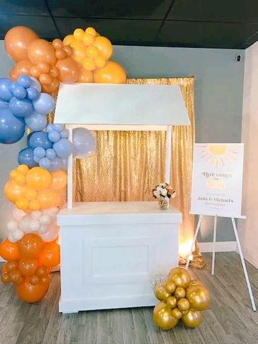 Decor Includes: Matching Balloon Garland, Signage, & Cake Stand
